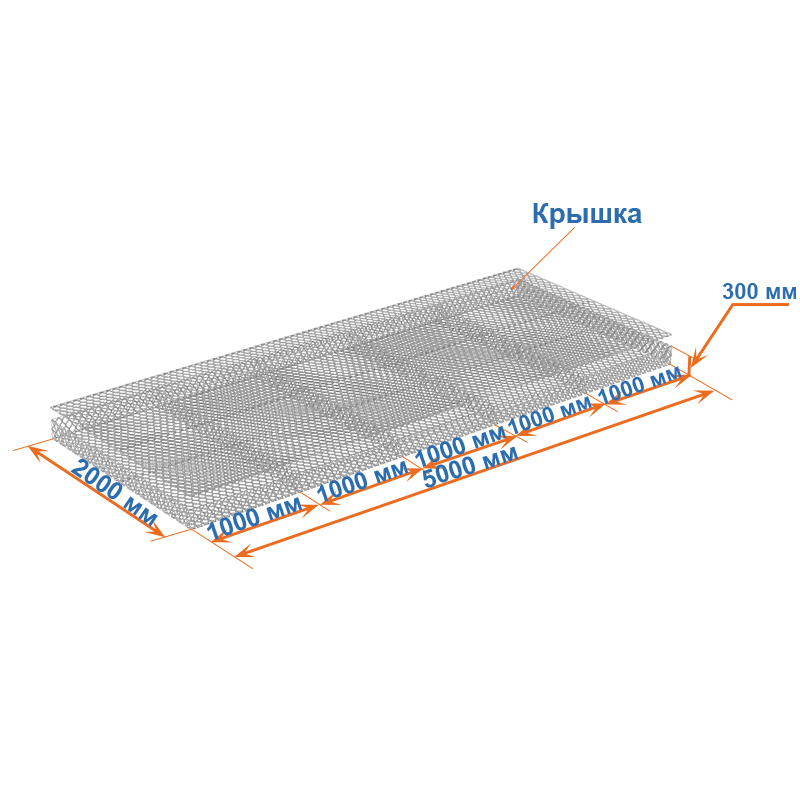 Габион матрац ГСИ-М 5х2х0,3 оцинкованный, Ø проволоки 2,7 мм, размер ячейки 6х8 см